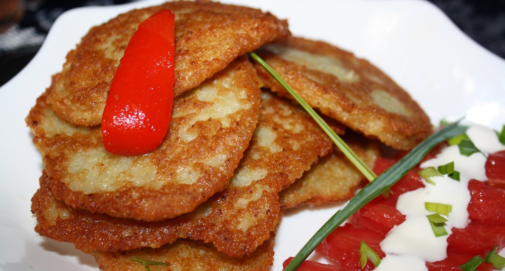 Горячие оладьи сразу подать на стол, т.к. при остывании, как и все блюда из картофеля, оладьи теряют свой вкус.