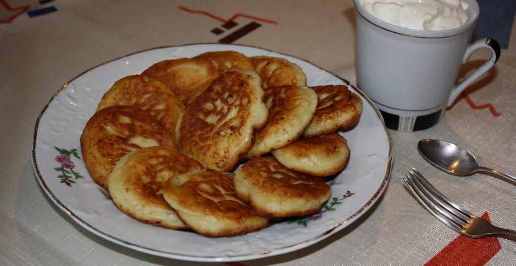 200 гр картофеля, 30 гр сливочного масла, 50 гр обезжиренного творога, 200 гр муки, 1 яйцо, 250-300 мл молока (в зависимости от качества ингредиентов количество молока может быть другим), 0,25 чайной ложки питьевой соды, 1 чайная ложка светлого винного уксуса, соль по вкусу, 100 мл растительного масла, 100-150 гр сметаны.