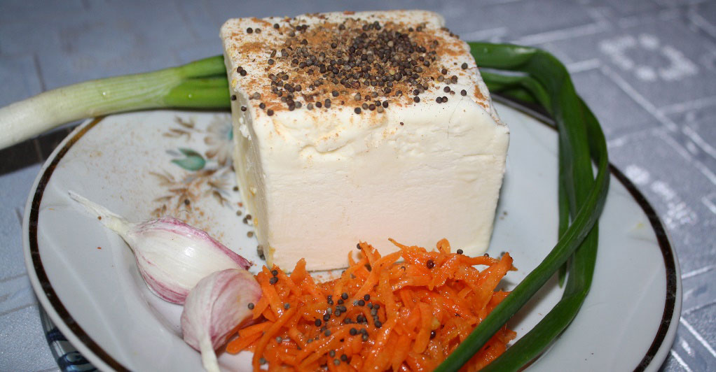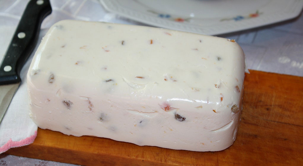 Творожный сыр готовится по описанной выше технологии, но вес груза при обезвоживании увеличивается до 4 кг.