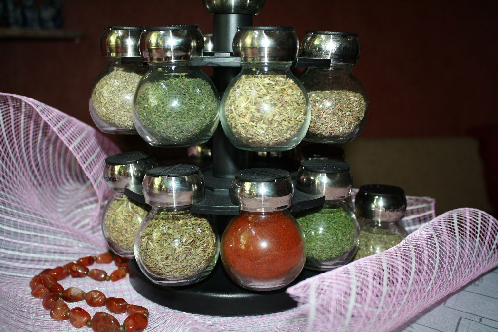 200 гр очищенных зубчиков чеснока, 100–200 мл растительного масла, 1–2 перчика чили, 0,5 чайной ложки раздавленного кориандра, по щепотке сушеных размолотых трав по вкусу (базилик, шалфей, петрушка), 1 столовая ложка рубленой зелени петрушки и укропа, 2–3 бутона гвоздики или другой набор пряностей по вкусу.