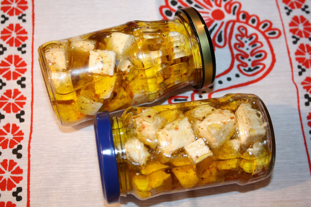 Смешать масло, маринад, мед, сок лимона, тщательно взбить, залить сыр. Банку укупорить крышкой и оставить сыр в прохладном месте (холодильнике) на 2–3 суток. Периодически сыр в банке аккуратно встряхивать.