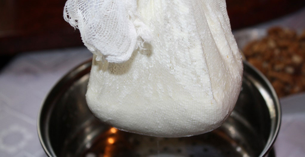 Готовую простоквашу вылить в холщовый мешок. Мешок подвесить на шесток, под него подставить емкость для сбора стекающей сыворотки. Для приготовления нежного, десертного творожка отвешивание простокваши продолжается около 12–16 часов. Творог после отвешивания можно подсолить и приправить тмином. Для более плотного творога отвешивание простокваши продолжается несколько дольше – около суток, а затем творог в мешке дополнительно обезвоживается прессом (около 2 кг).
