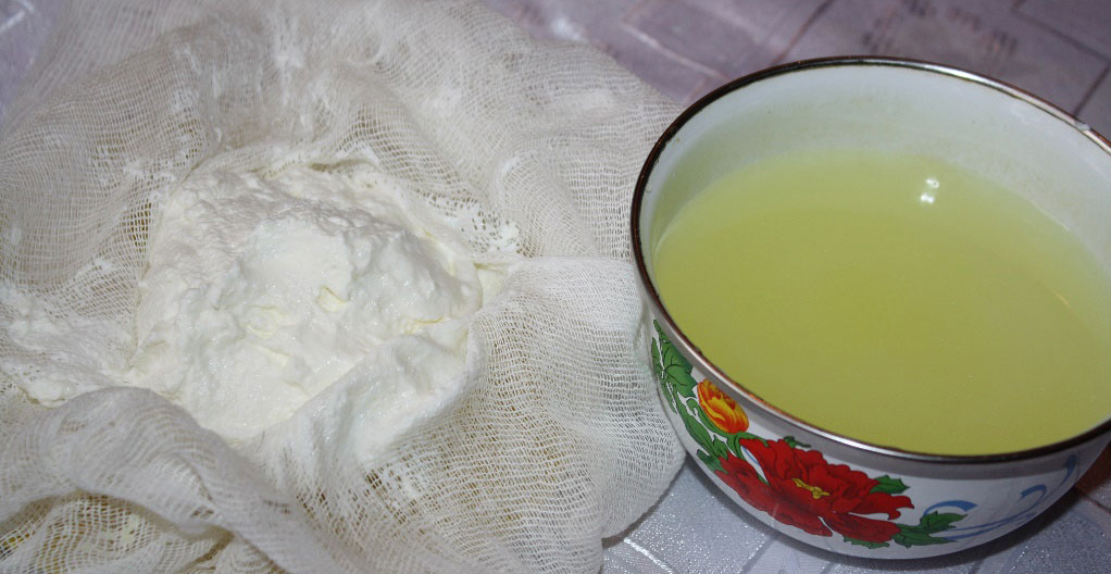 Деревенский творог готовят из жирного цельного молока, без добавления заквасок – сметаны, простокваши или других кисломолочных продуктов. Молоко вылить в чистый жбан и оставить на 24–36 часов при комнатной температуре для заквашивания в простоквашу.