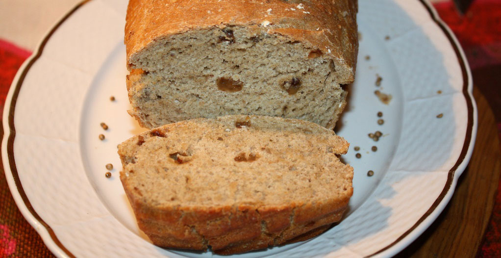 Когда на тесте образуется корочка (примерно через 1,5 часа после начала выпечки, обычно за 15–20 минут до готовности), вынуть его из духовки, смазать (сбрызнуть) верх подсоленной водой (очень осторожно) и посыпать кориандром. Хлеб снова поставить в духовку, через 15–20 минут проверить деревянной палочкой готовность и, если хлеб готов – духовку выключить и приоткрыть дверь.