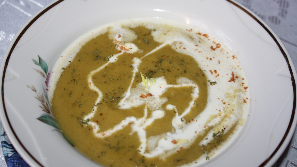 Суп подать со сливками или сметаной, сверху посыпать пряностями для овощей (например, сушеные травы, чеснок и имбирь).