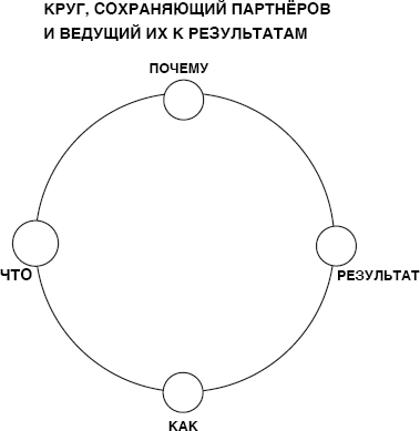 Когда партнёры понимают цель, над которой работают, когда они знают командные ценности и опираются на них, тогда отсутствие на каком-либо этапе результата их не останавливает. А если результат появляется, то они относятся к нему как к чему-то значимому и важному. То есть ответ на вопрос ПОЧЕМУ помогает понять, что за вашей работой стоит нечто большее, чем просто звонки, презентации, подписания, статусы, деньги, обороты и т. д. Людям нужно понимать, ради чего они работают, и это то, что за пределами их личных целей.