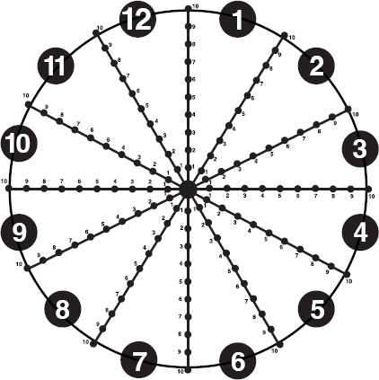 Помните знаменитое колесо баланса? Так вот, на его основе я сделала своё колесо – колесо эффективности наставника. Оно состоит из 12 спиц, на которых держится наставничество в МЛМ. Если каких-то спиц не хватает, колесо перестаёт крутиться и выполнять свою функцию. Полноценное же колесо будет везти вас по бизнесу очень-очень далеко и очень-очень долго. На каждой спице есть точки от 0 до 10, и ваша задача – периодически оценивать, на какой примерно отметке вы находитесь, чтобы в конце соединить все точки и увидеть, где проседает ваша работа с партнёрами. Конечно же, в идеале нужно иметь отметки в 10 баллов на каждом из критериев. Однако если вы никогда не изучали тему наставничества, то до десяточек нужно будет расти.