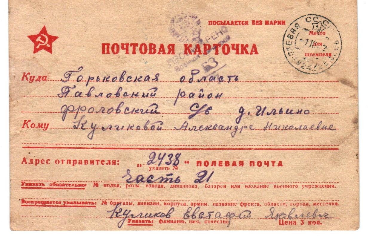 Письмо о последнем бое Куликова Е. Я. для его жены и дочери.