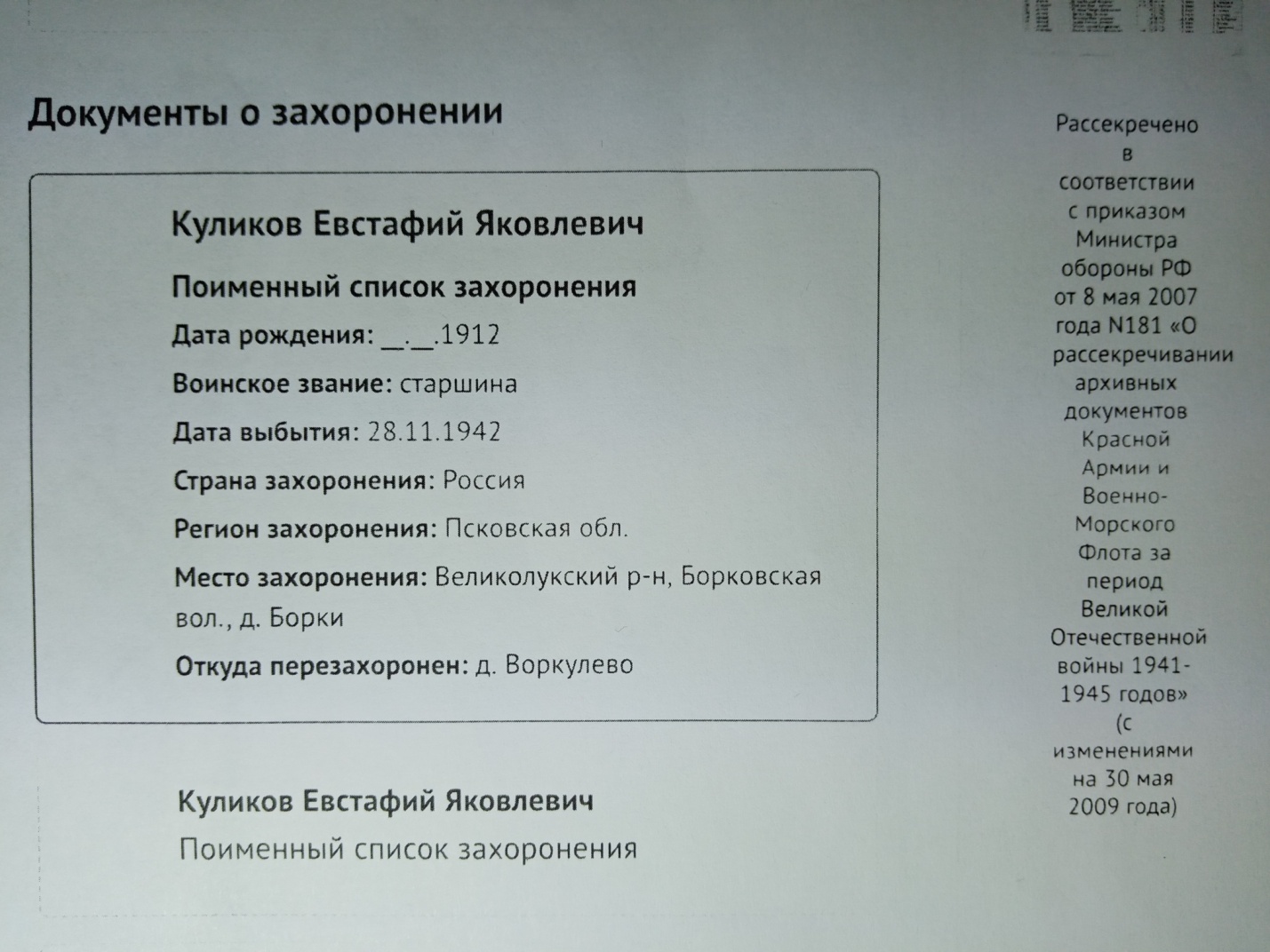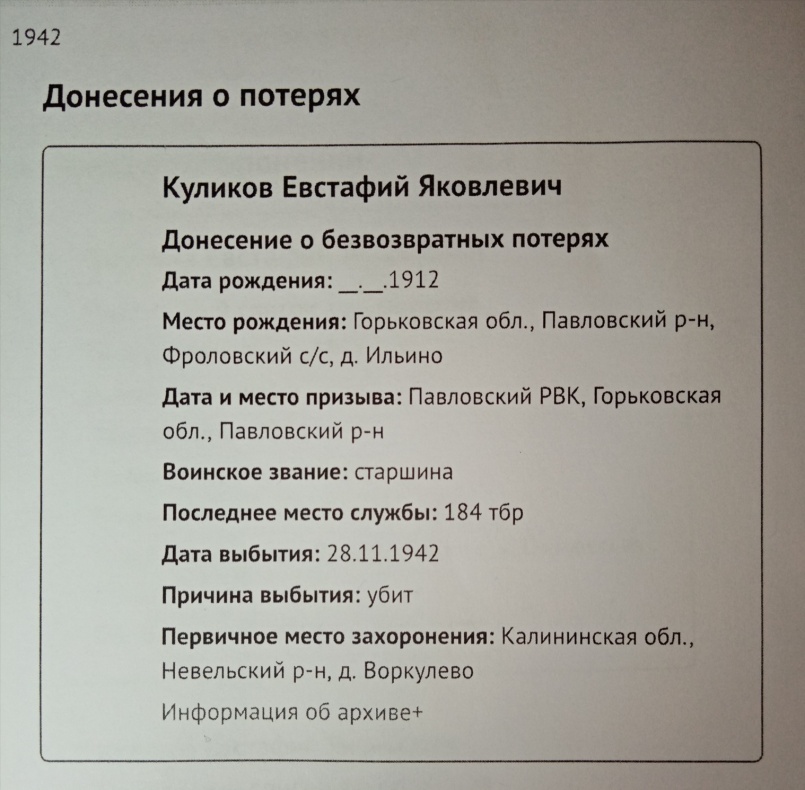 отца и деда Куликова Евстафия Яковлевича, кото-