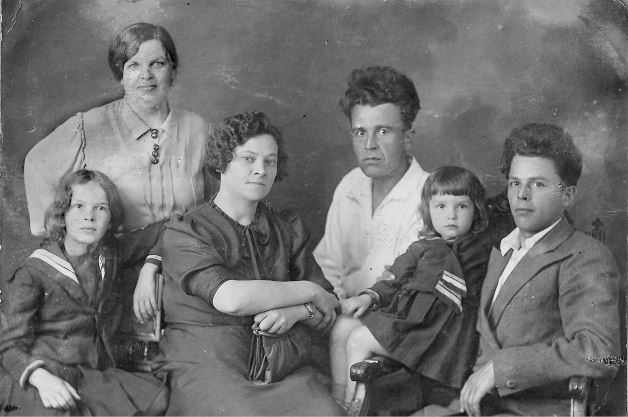 Днепропетровск. 1940 год. Слева направо: я в возрасте 11 лет, Цокур М. М. (моя мама), Бутенко Е. В. (тетя), Клименко В. Г. (отец), Тамара Клименко (сестра), Цокур А. М. (дядя)