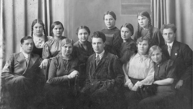 Завкафедрой биохимии Днепропетровского фармацевтического института Василий Гурьевич Клименко с группой студентов. 1939 год. Днепропетровск