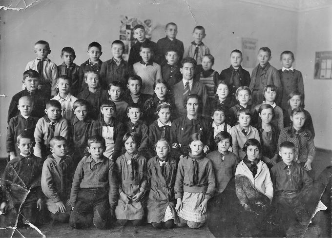 Днепропетровск. 1940 год. Наш третий класс. Сидят (слева направо): четвертая – я, Валентина Клименко, пятая – Лида Киперман, шестая – Галя Брежнева. Третий ряд (снизу, слева направо): седьмой – пионервожатый Савва, девятая – Оля Логвиненко, в центре – учительница Ева Моисеевна