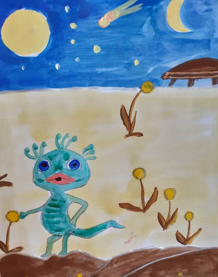 Космос бесконечен, там бескрайние просторы, огромное количество небесных тел – планеты, метеоры и метеориты, астероиды и кометы, туманности и чёрные дыры. Сильватикус знал космическую карту, и умело вёл корабль прочь от опасных мест и явлений. Но этого он предусмотреть не мог, где-то в космическом пространстве сошла с орбиты планета , она потеряла ориентир и наскакивала на всё что ей встречалось. От столкновения небесных тел летят осколки разной величины – это метеориты. Сильватикус сказал по внутренней связи Домине: