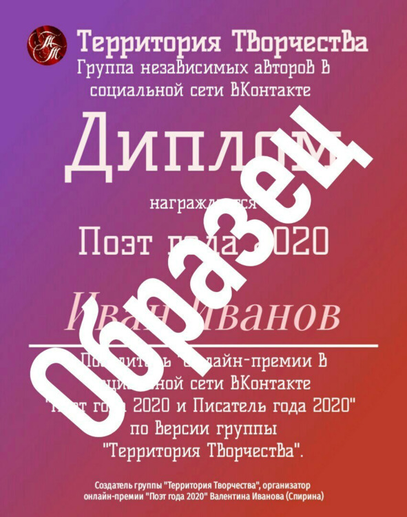 Положение о проведении онлайн-премии «Поэт и Писатель года 2020» по версии группы «Территория Творчества»