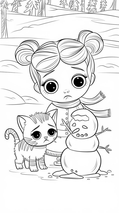 – А давайте поможем Мурчику построить новый снежный городок! – предложила Снежка. – когда найдём мой шарф…
