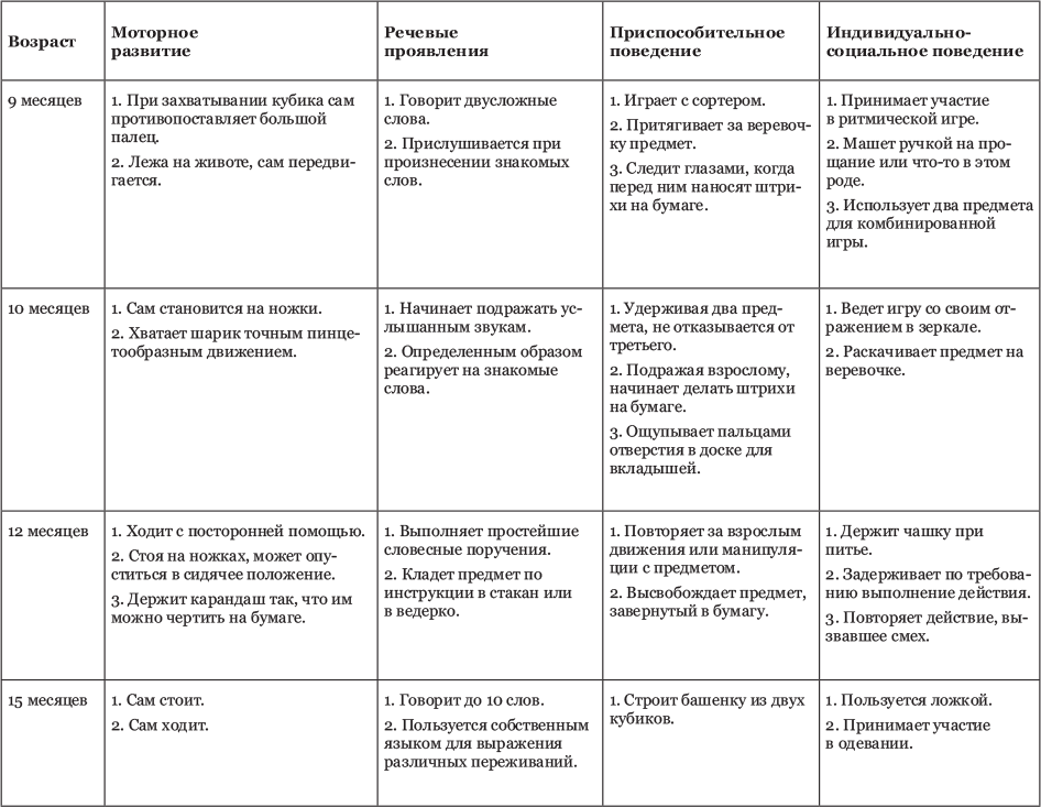 Ниже я приведу основные показатели развития ребенка в разный возрастной период.