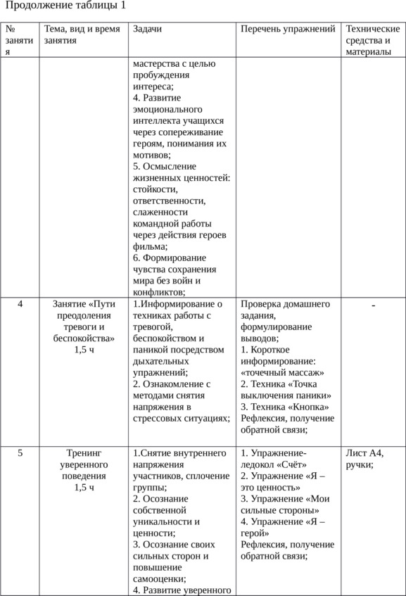 1. Ознакомление участников с целями и задачами проводимых занятий;