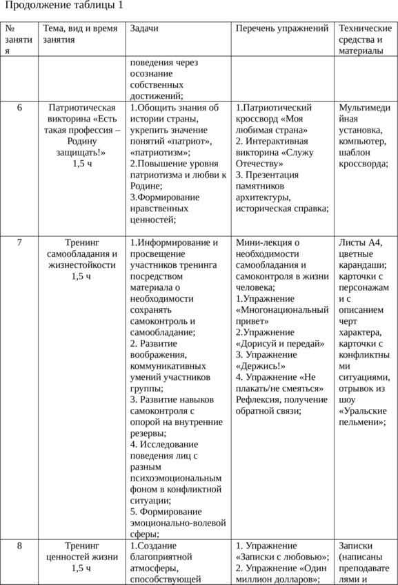 Конспекты занятий по программе формирования психологической готовности юношей к службе в вооружённых силах