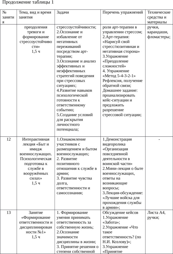 3. Развивающее направление: мероприятия направленные на формирование уровня целеустремленности, решительности, выдержанности, ответственности. Организация работы, направленной на снижение уровня негативного отношения среди юношей к службе в вооружённых силах: мероприятия в форме психологических игр, групповых бесед, часов общения с элементами тренингов.