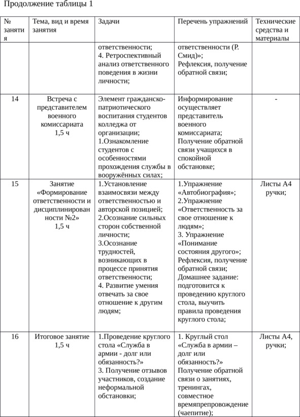 1. Просветительское направление: лекционно-просветительская деятельность, направленная на формирование психологической готовности юношей к службе в армии; просмотр видеороликов о службе в армии, встречи с юношами, прошедшими военную службу;