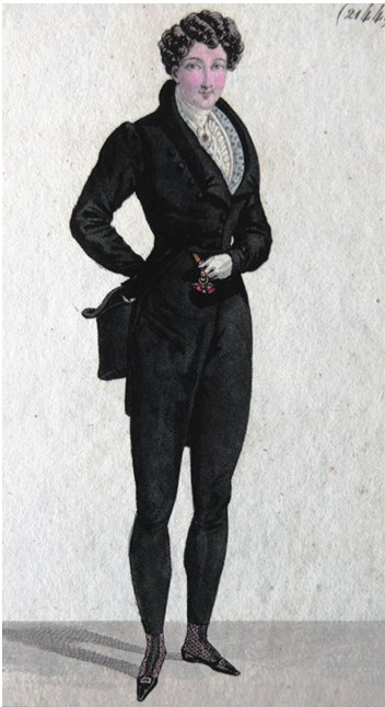 Темная сарториальная палитра была в то время в моде. Однако мужчины носили далеко не один только черный цвет. И «светские львы», и богема питали пристрастие к ярким краскам, пусть даже выражавшееся в покупке цветного жилета. Журнал Le Dandy: Journal special de la coupe pour messieurs les Tailleurs (1838) писал: