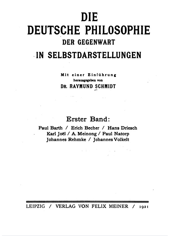 Помимо фактической, этот сборник преследует и образовательную цель. Она вытекает из тех же убеждений. Как в наш век специализации и разделения труда, позволяющий лишь очень небольшому числу людей черпать непосредственно из многих источников, человек может осознать философскую личность, быть приведенным к ней, которая своим судьбоносным развитием и уникальным состоянием души предлагает ему то мировоззрение, которого он так жаждет? Перед лицом этого чрезвычайно важного вопроса все представления из вторых рук меркнут, превращаясь в простые схемы. Только автопортреты, подобные тем, что представлены здесь, ставят под вопрос серьезного искателя. Только они дают краткий, но неискаженный фактический обзор философских достижений наших лидеров в области философии и широкую поверхность контакта с людьми, стоящими за этими достижениями. В рамках этих самоописаний ищущий вскоре обнаружит адекватную ему личность, чтобы направлять ее к прямым источникам, которые открываются перед ним в ней и через нее.
