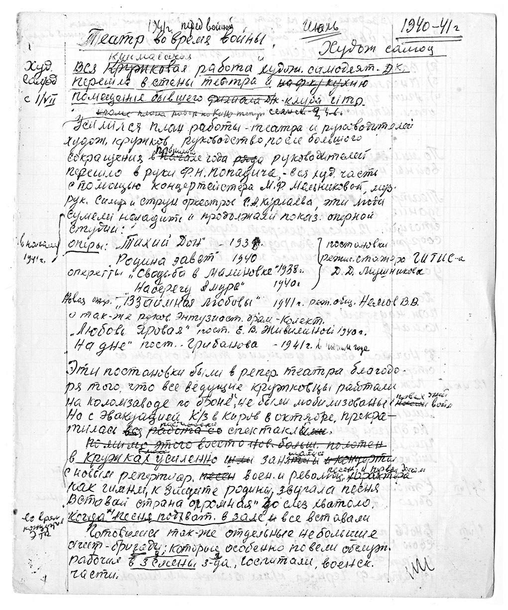 «В 1941-м году у меня открывается большая дорога жизни – я кончаю школу и обязательно поступлю в ВУЗ. Хочу быть инженером, строить машины для нашей советской родины. Много предстоит сложностей: экзамены, самостоятельная жизнь, углубленная учеба. Но все это я ожидаю с радостью и готова перенести любые трудности, только чтобы иметь возможность работать на заводе инженером. Вот почему я с такой радостью ожидаю новый год – год больших для меня событий. Но я знаю, что страна заботится о детях, заботится обо мне, о моем воспитании и знаниях и ждет от меня ответа за свою заботу. Мой ответ любимой родине будет отличная учеба».
