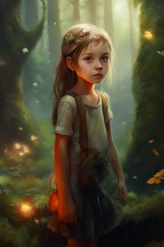 В самом сердце причудливого маленького городка Эльдория, жила маленькая девочка по имени Аманда. С её невероятными каштановыми кудрями и глазами, искрящимися безграничным любопытством, Аманда была известна повсюду своим духом авантюризма. Эльдорию окружал мистический лес, о котором жители города шепотом рассказывали друг другу. Легенды повествуют о крылатых лошадях, озорных феях, которые подшучивали над ничего не подозревающими странниками, и неуловимом зелёном монстре, который охраняет сердце леса. Родители Аманды, мудрые и осторожные, часто предупреждали ее, чтобы она не отправлялась в лес, поскольку верили, что его магия, хотя и завораживающая, таит в себе опасности для тех, кто осмеливается исследовать его.