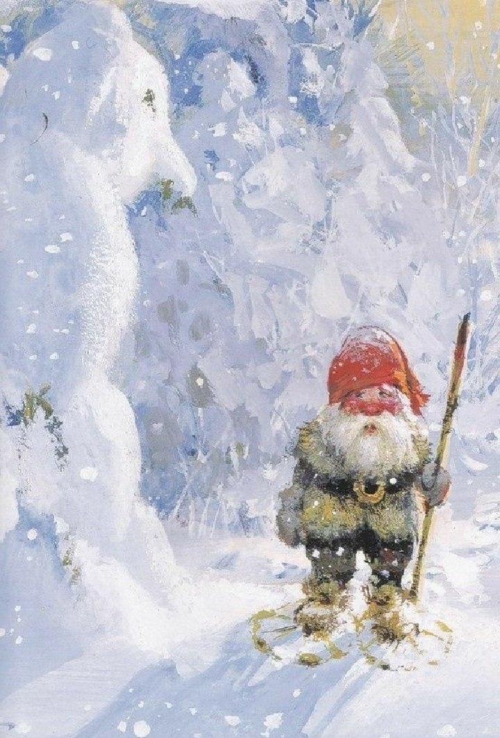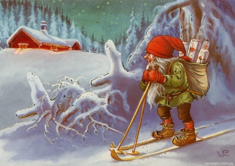 Но через некоторое время он остановился. Лыжня кончилась, а снег впереди лежал ровненько, как совсем новая белая скатерть. Клёпа вздохнул и потёр щеки. Его так и тянуло бросить всё и вернуться домой. Любая белочка справилась бы с этим заданием лучше его, думал он. Но внутри, конечно, понимал, что сам виноват – самому исправлять. Делать нечего. Клёпа покрепче сжал лыжные палки и осторожно двинулся вперёд. Ледяная корка пугающе хрустела. У гнома от страха дрожали ноги, поэтому он едва шёл. Ещё это далёкое хлопанье крыльев, тот шутник будто преследовал его.