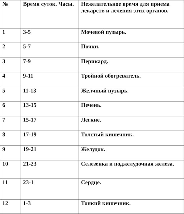 Таблица №37 Лунных часов. Когда не надо проводить лечение на органы человека.