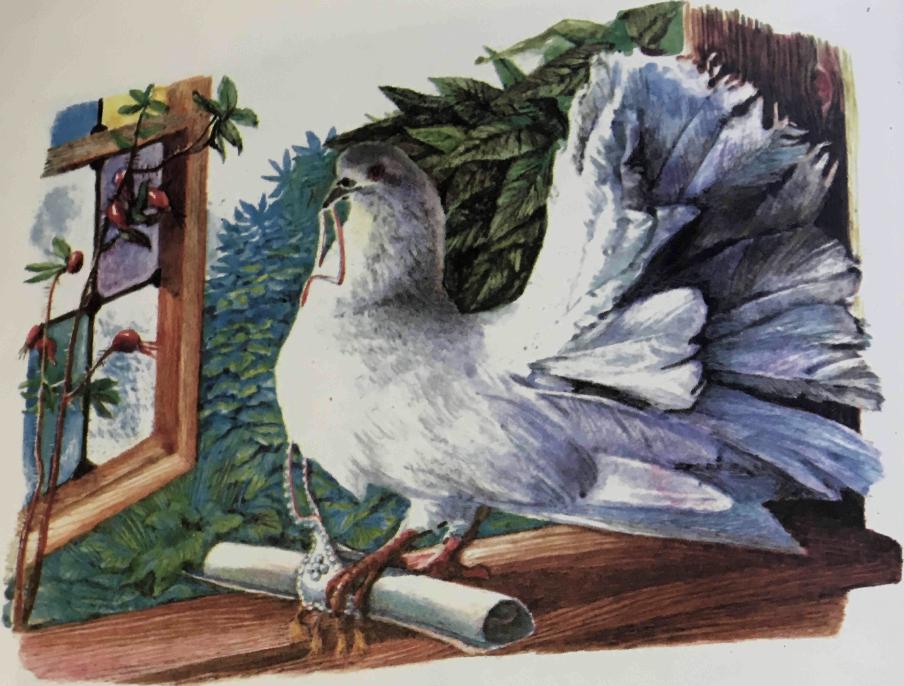 – Ур-р-р, – сказал голубь, развязывая клювом узелок. Вам письмо из замка Арли. – И, оставив письмо, упорхнул прочь.