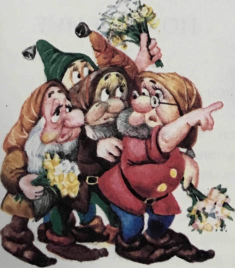 – Хей-хей-хей! – кричал Ворчун, приплясывая вокруг Дока. – Что я говорил вам! Она помнит о нас! Эй-эй-эй! Хэй-хэй-хэй! Где мой колпак? Я вас спрашиваю: как я смогу появиться перед Белоснежкой без колпака?