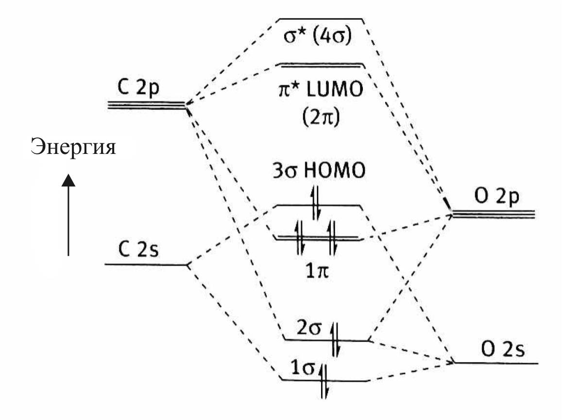 Молекулярные орбитали 2σ и 3σ не вносят вклада в связывание и являются фактически не поделенными электронными парами кислорода и углерода соответственно.