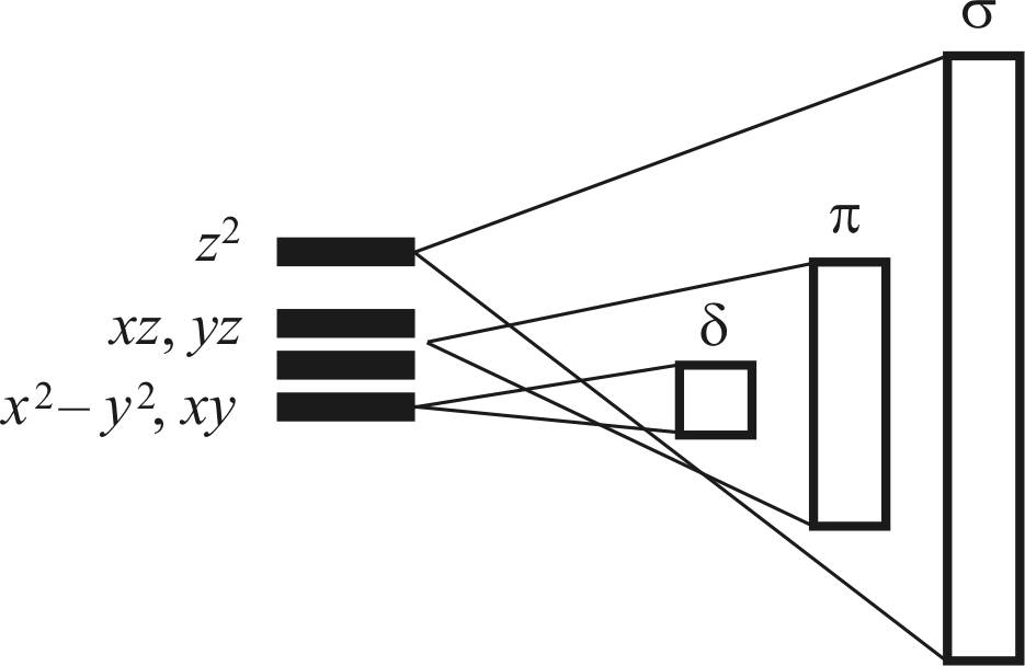 π-связывании (dyz и dzx) и еще менее эффективном δ-связывании (dxy и dx2–y2).