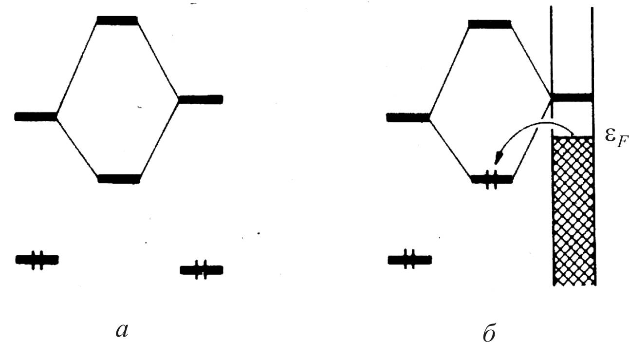 Рис. 27. Схема взаимодействия орбиталей молекулы и металла