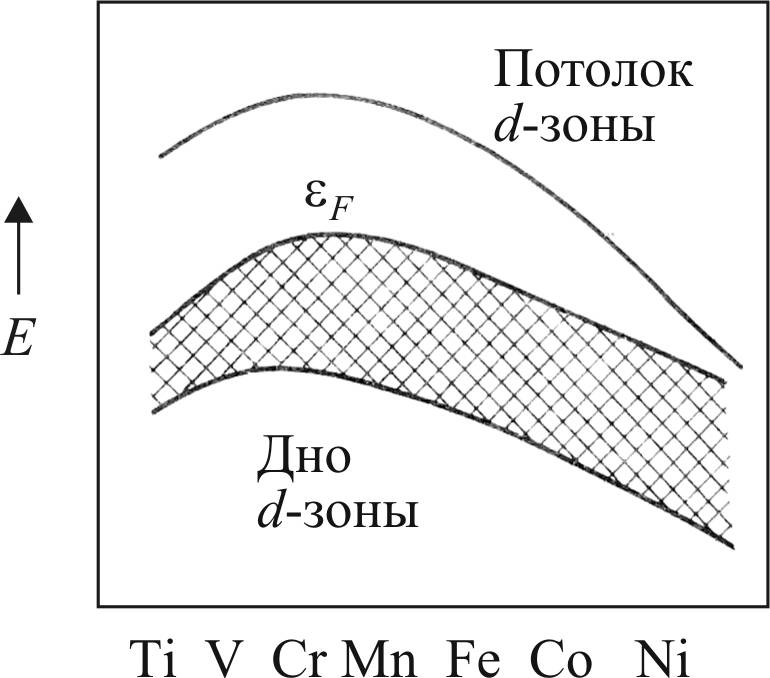 Рис. 31. Энергетические уровни d-зоны металлов