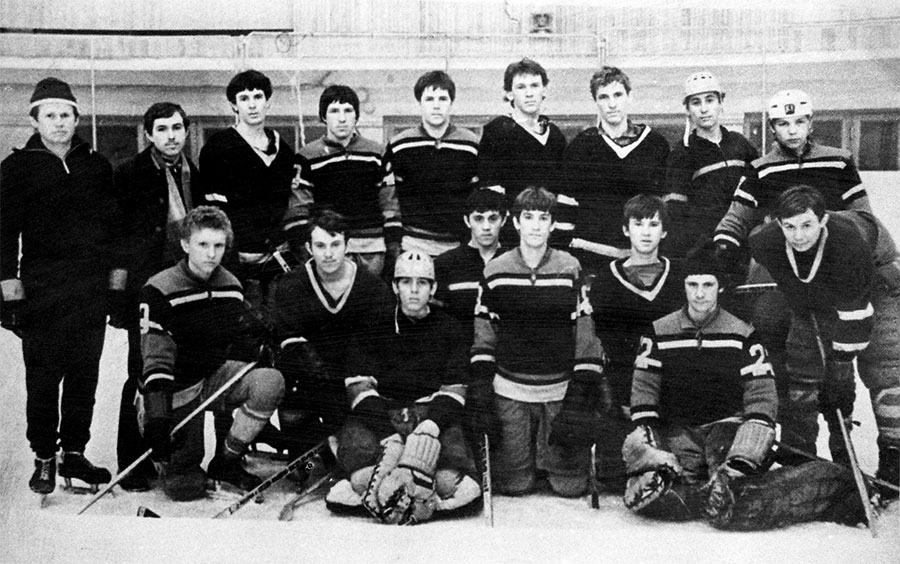 Хоккейный клуб «Юность» в Первом микрорайоне был самым популярным, и сезон 1973/74 собирал наибольшее количество болельщиков на наши игры и баталии. Коробку обступали не в один, а в три слоя, залезали даже на деревья. Чтобы такое количество зрителей собиралось на дворовой коробке! Я больше за всю свою жизнь не встречал. В составе этой команды я был капитаном, играющим тренером и… владельцем клуба. Плохой пример подавать уже не мог, хоккей увел меня от плохого в хорошее. И я затем с помощью хоккея уводил ребят от плохого к хорошему. Энергию и время тратили на тренировки, а не на хулиганство.