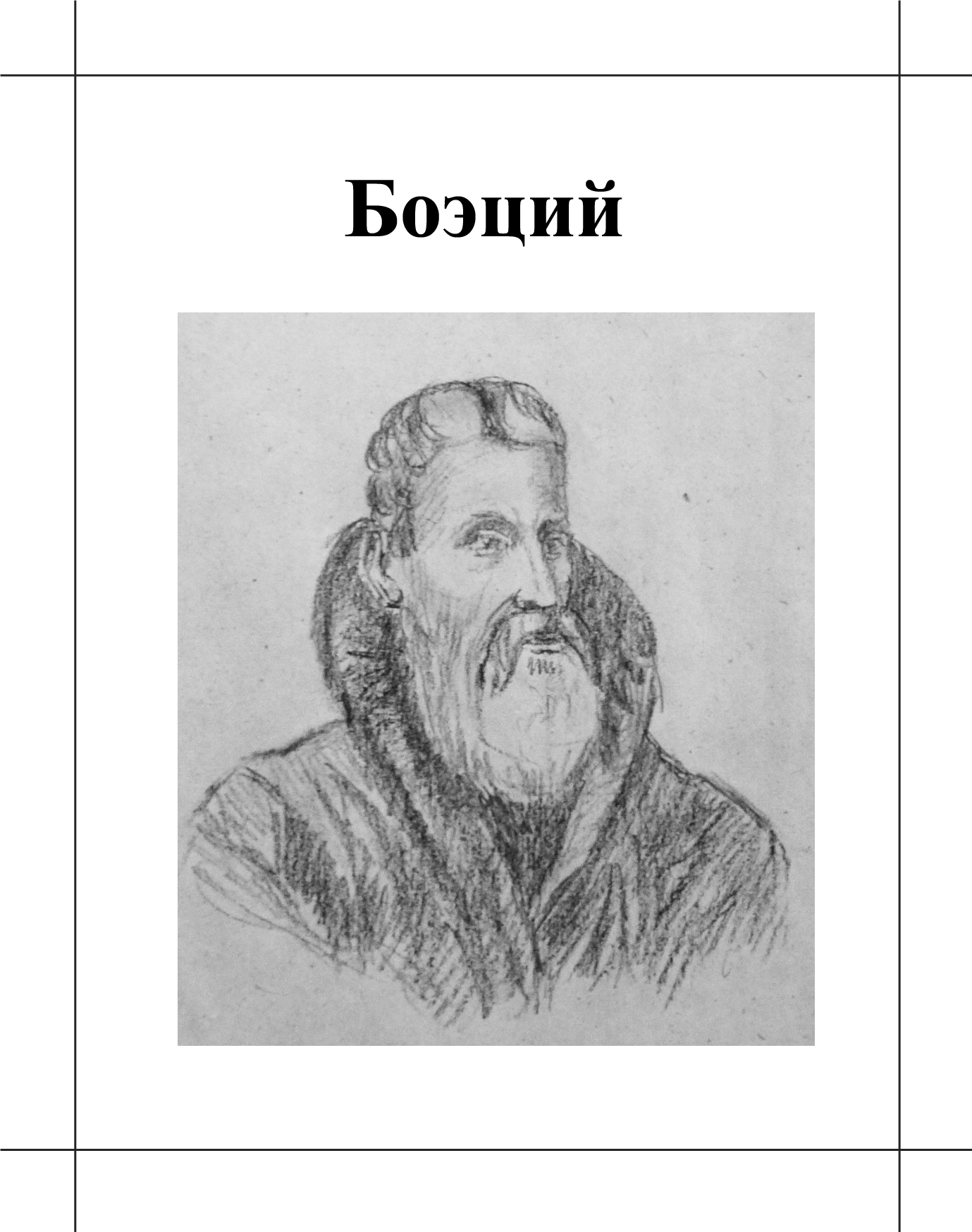 Боэций – римский государственный деятель и философ. Родился в Риме в аристократической семье. После смерти отца Боэций был принят в дом своего родственника Меммия Симмаха. После завоевания Италии королем остготов Теодорихом Великим (493 г.), Боэций перешел к нему на службу, где вскоре вошел в ближайшее окружение короля. Через два года службы был обвинен в измене (защищал интересы римских граждан от злоупотреблений остготских чиновников). В заключении написал свое наиболее известное произведение «Об утешении философией». Боэций был казнен в 524году.