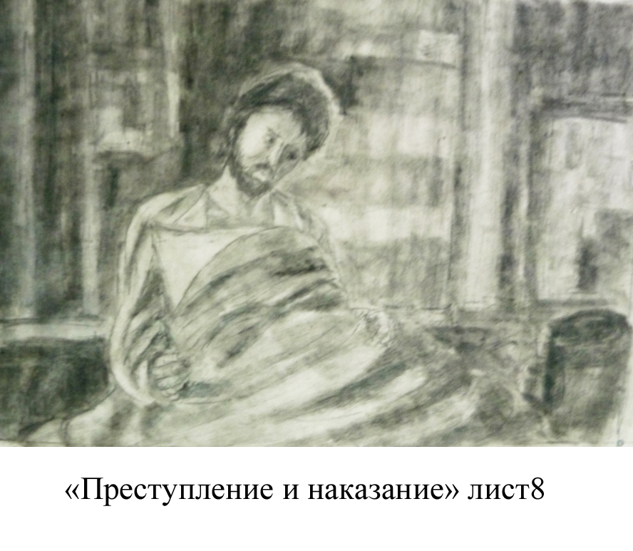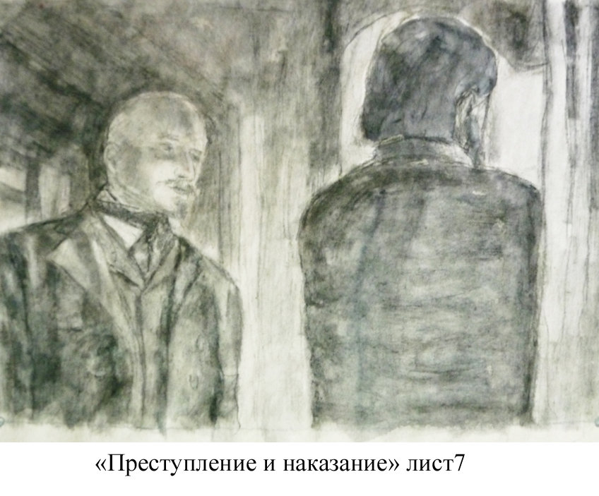 Отрывок из романа Достоевского «Преступление и наказание»: «…Раскольников с побледневшими губами, с неподвижным взглядом тихо приблизился к нему, подошел к самому столу, уперся в него рукой, хотел что-то сказать, но не мог; слышались лишь какие-то бессвязные звуки.– С вами дурно, стул! Вот, сядьте на стул, садитесь! Воды! Раскольников опустился на стул, но не спускал глаз с лица весьма неприятно удивленного Ильи Петровича. Оба с минуту смотрели друг на друга и ждали. Принесли воды.– Это я… – начал было Раскольников.– Выпейте воды. Раскольников отвел рукой воду и тихо, с расстановками, но внятно проговорил: Это я убил тогда старуху-чиновницу и сестру ее Лизавету топором, и ограбил. Илья Петрович раскрыл рот. Со всех сторон сбежались. Раскольников повторил свое показание…»