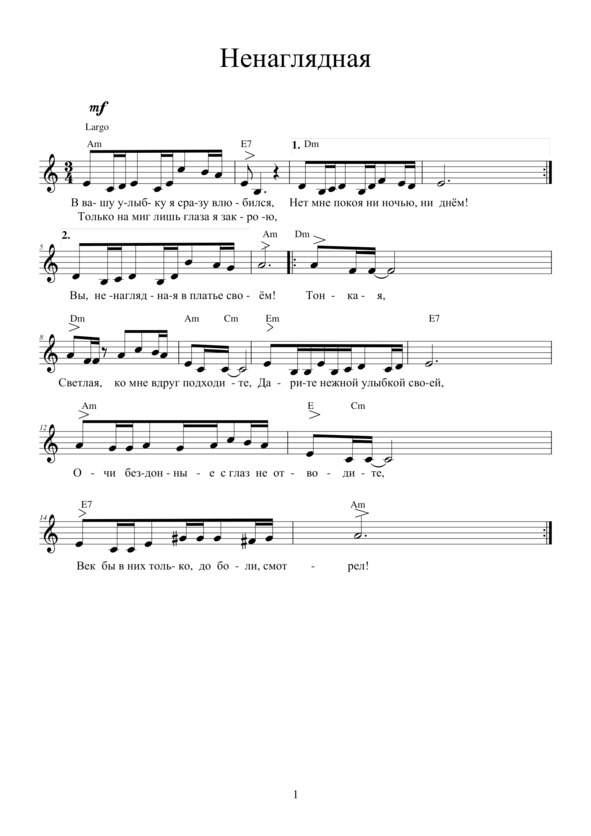 НЕНАГЛЯДНАЯВ вашу улыбку влюбился – не скрою,Нет мне покоя ни ночью, ни днём,Только на миг лишь глаза я закрою —Вы, ненаглядная, в платье своём, Тонкая, светлая, ко мне вдруг подходите. Дарите нежной улыбкой своей, Очи бездонные с моих глаз не сводите, Всё говорите без милых затей…Но я уехал, вы слишком уж молоды,Где-то к тому же меня очень ждут,Но почему, почему мне так холодно.Ваши глаза, ваши руки зовут? Ваша улыбка встаёт лучезарная. Что там Джоконда с улыбкой своей! Знайте, родная, моя ненаглядная. Вы до конца теперь в жизни моей!
