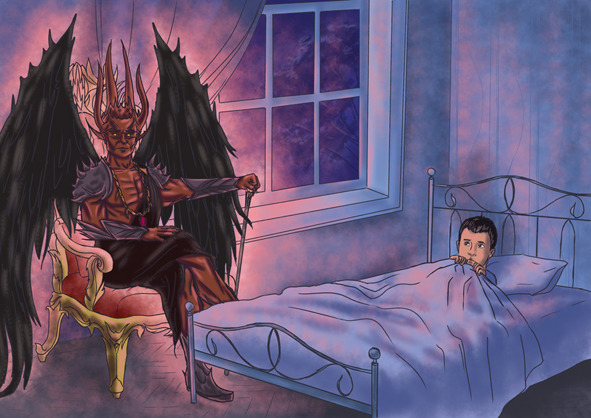 Это было зрелище даже для моего детского разума восхитительное. Сначала увидел его в каком-то божественно-фантастическом одеянии с большими черными крыльями за спиной. От неожиданного гостя исходило розовое сияние. Затем одежда начала на нем таять и проявлялась в совсем ином виде: высшей степени элегантный черный костюм, ослепительно белая манишка и красный галстук. Лицо мужчины украшала ухоженная черная бородка клинышком. Его возраст угадать было невозможно. Но он был красив. Его облик завораживал. Гладкая блестящая кожа плотно облегала мышцы лица, лишая его мимики. Взгляд был пронзительным, но не жестоким. Глаза смотрели на меня спокойно, не мигая. Какое-то время мы таращились друг на друга без звука и без движений. Наконец его губы разжались и началась какая-то их артикуляция. Но исходящие из его нутра звуки больше напоминали хриплые бульканья в кишечнике нежели человеческую речь. Эти звуки обтекали мою голову, просачивались прямо в мозг. И тут я начал разбирать их смысл.