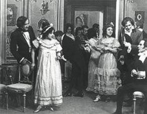 «Евгений Онегин», 1911 г., немой ч/б фильм. Режиссер В. Гончаров, в ролях: П. Чардынин, Л. Варягина, А. Гончарова, А. Громов, А. Бибиков.