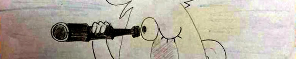 Когда Большой Клюв скрылся из вида, Лиса вытащила из груды мусора любимую сковородку. Сковорода была испорчена. Посмотрев в нее, рыжая увидела какую-то кривую лису: