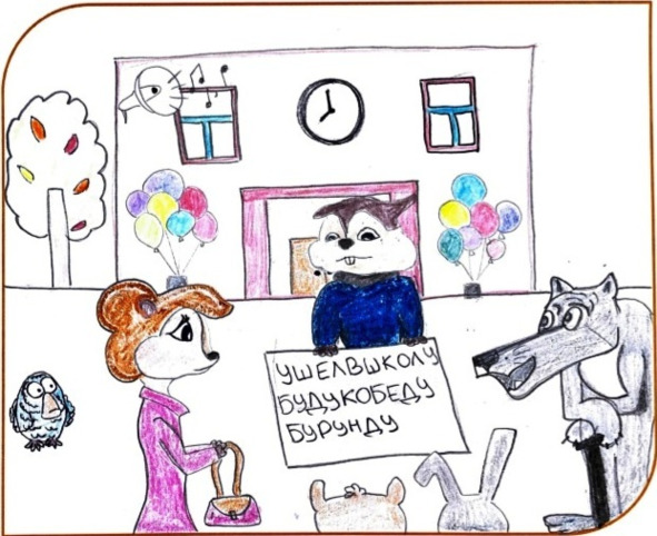 …Вот и наступило долгожданное 1 сентября – праздник всех лесных школьников и лесных учителей. Мама-бурундучиха хотела разбудить сына, но обнаружила вместо него на кровати записку с коротким текстом: «УшелвшколубудукобедуБурунду.» Мама была в ужасе, папа еще спал, а малыш шел не спеша по Лиловой улице и напевал веселую песенку: