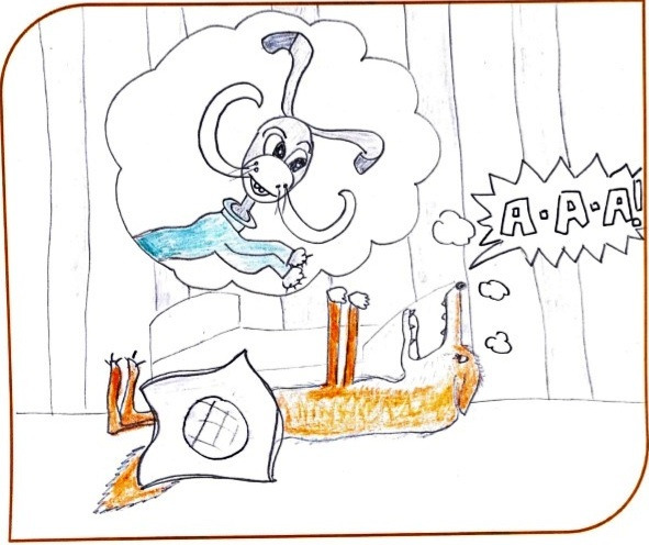 Нахмуренное туманное утро вздрогнуло от страшного грохота, раздававшегося из дома с оранжевой крышей. Лиса, свалившись с кровати, досматривала последний сон – странные зайцы (с огромными крокодильими зубами и бивнями мамонтов) окружили ее дом и считали считалочку: