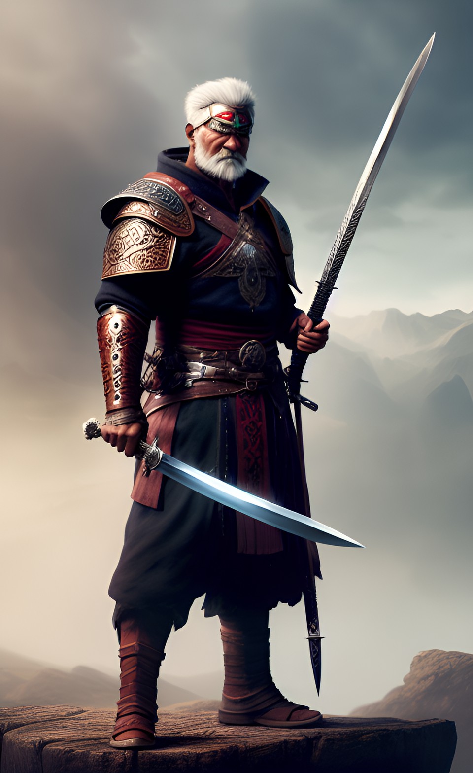 Услышав позади шум, развернулся и увидел невдалеке Ассира, одетого в странные чёрные одежды. Узкие сапоги, облегающие икры, штаны и куртка. Поверх накинут длиннополый плащ. Даже из волос вроде бы исчезла седина и они стали иссиня-чёрными. В руках старик держал меч, похожий на тот, что изображён на амулете. Он стоял к Ивану спиной и не мог видеть мальчика. Смотрел куда-то вдаль, и вскоре стало ясно, что здесь есть ещё кто-то.