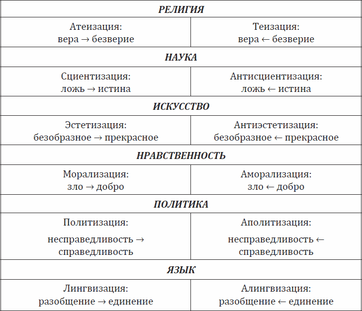 Атеизация, сциентизация, эстетизация, морализация, политизация и лингвизация – вот шестеричный путь, ведущий нас к эволюционным идеалам. Только на этом пути мы обретаем свою сущность – человечность.