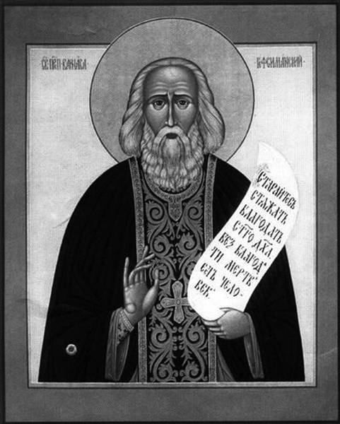 «Старайтесь стяжать благодать Святаго Духа, без благодати мертв есть человек», – эти слова начертаны на иконе святого на свитке в его руке.