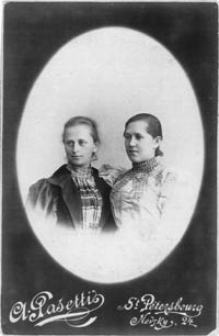 Ольга Ивановна Муравьева (справа) с духовной сестрой. 1897 год. Справа – обратная сторона фотографии.