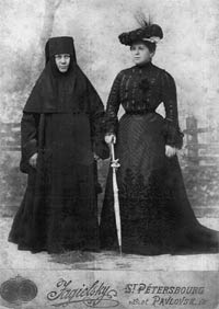 Монахиня Феофания (Рентель) – казначея Воскресенского Новодевичьего монастыря (с 1916 года его последняя игумения) и благодетельница обители – Ольга Ивановна Муравьева (с 1920 года – монахиня Христина, в схиме – Серафима). Около 1906 года.